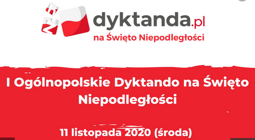 Z okazji zbliżającej się rocznicy odzyskania Niepodległości, Zespół Dyktanda.pl organizuje I Ogólnopolskie Dyktando na Święto Niepodległości, które przybierze najbezpieczniejszą obecnie formę, czyli odbędzie się przez Internet.