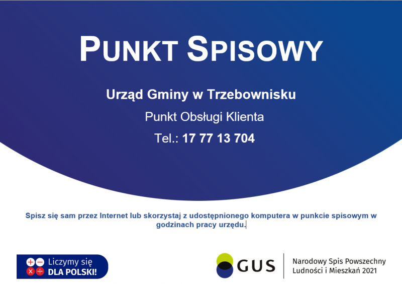 Dla osób, które nie posiadają komputera lub dostępu do internetu w Urzędzie Gminy w Trzebownisku zostało przygotowane stanowisko wyposażone w sprzęt komputerowy z dostępem do Internetu, z którego może skorzystać każdy chcący dokonać samospisu internetowego poprzez formularz spisowy dostępny na stronie http://spis.gov.pl.