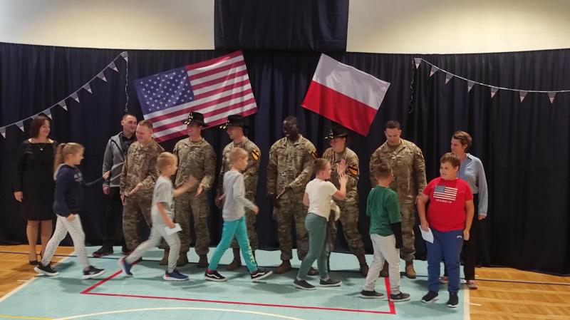 Dnia 03.10.2024r. Szkoła Podstawowa w Wólce Podleśnej miała zaszczyt gościć żołnierzy armii amerykańskiej HEADQUARTERS 1st CAVALRY DIVISION ARTILLERY, którzy odwiedzili szkolną społeczność w ramach programu wymiany kulturalnej.