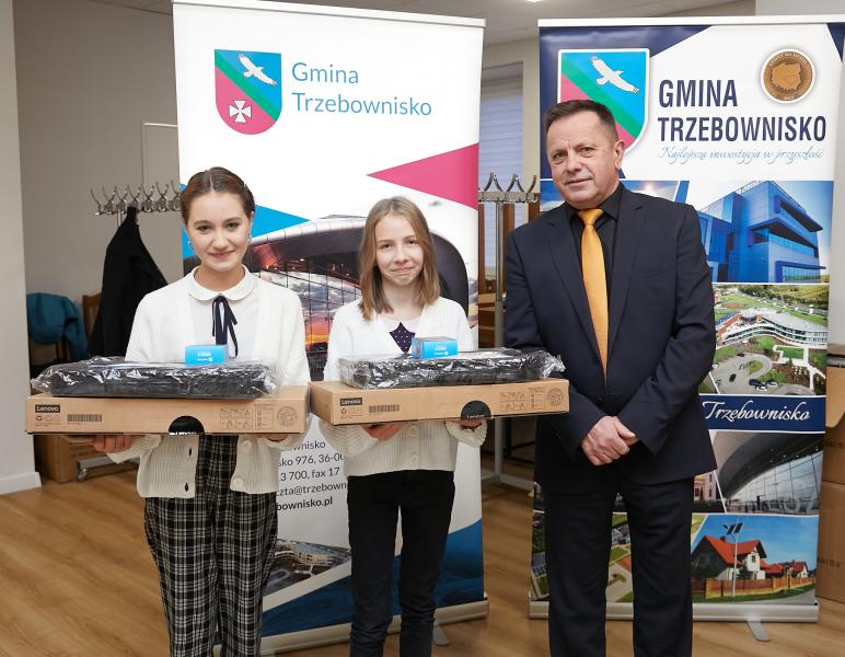 W dniu 22.12.2022r. w Domu Ludowym w Trzebownisku, odbyło się przekaznie sprzętu komputerowego zakupionego  z programu „Wsparcie dzieci z rodzin pegeerowskich w rozwoju cyfrowym – Granty PPGR”.