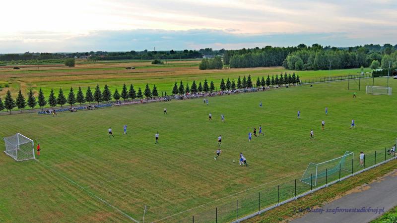 - Stadion z bieżnią 3-torową i budynek szatni.