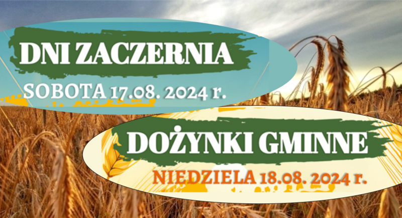 Serdecznie zapraszamy już w najbilższy weekend na Dni Zaczernia oraz Dożynki Gminne. Wydarzenie będzie miało miejsce na Stadionie KS Zaczernie. Szczegóły na załączonym plakacie.