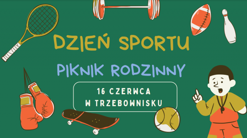 Zapraszamy na Dzień Sportu - Piknik Rodzinny, organizowany przez Radę Rodziców, Nauczycieli Szkoły Podstawowej oraz Przedszkola w Trzebownisku.