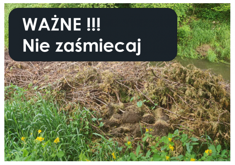 Zakazuje się zasypywania rzeki i brzegu jakimikolwiek odpadami, gdyż uprzątnięcie zaśmieconego terenu obciąża budżet Gminy, a tym samym każdego mieszkańca.